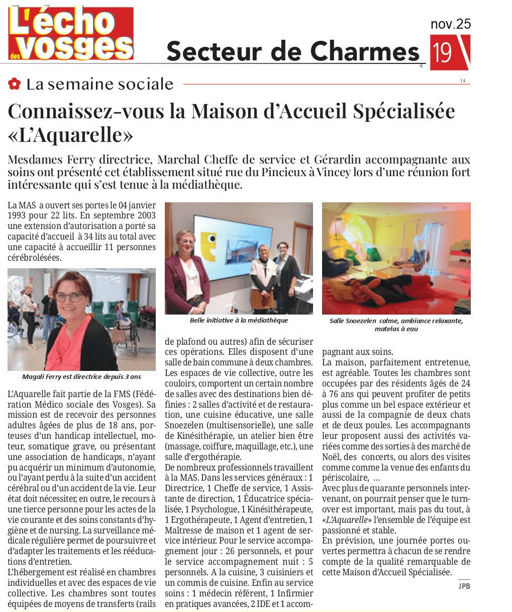 Vosges matin - L'Aquarelle un accompagnement spécifique au quotidien