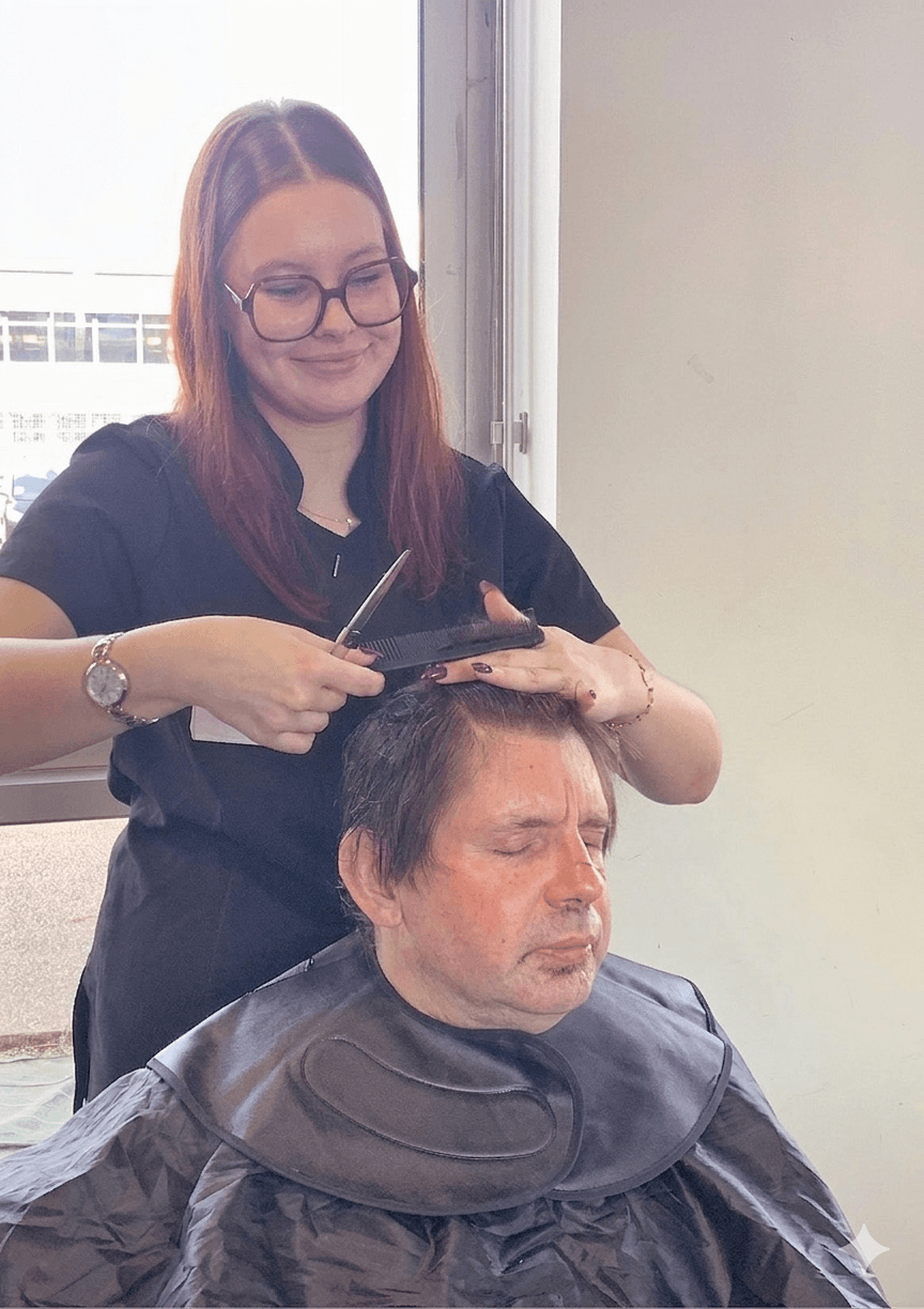 Pris en charge par six élèves en préparation de CAP, sous l’œil bienveillant de leur professeure Coralie Colin, nos travailleurs ont vécu un véritable moment de soin, d’écoute et de confiance en soi. Entre gestes professionnels, attention portée à chacun et échanges spontanés, cette matinée a été bien plus qu’un simple rendez-vous esthétique.