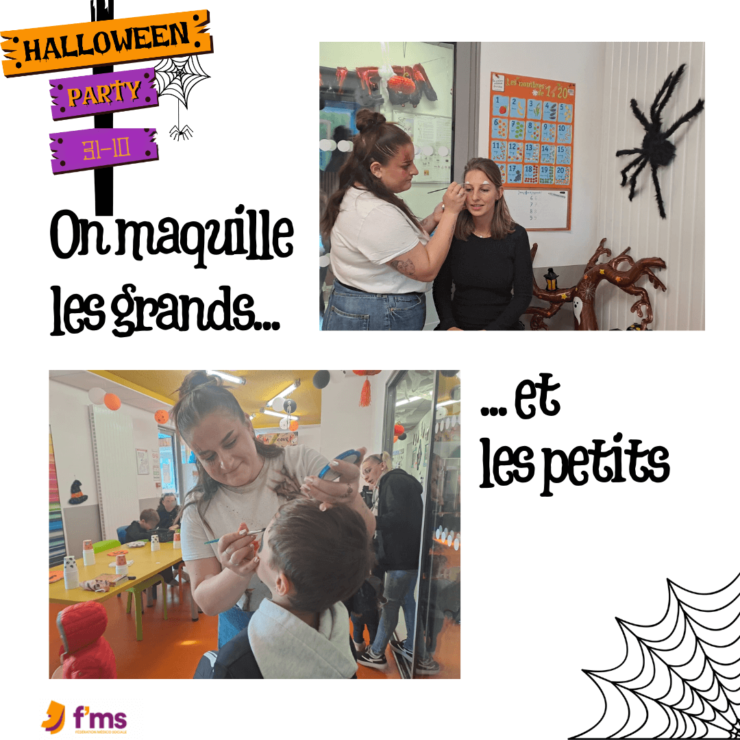 - Atelier maquillage : on sort les pinceaux, les paillettes et on devient monstres, fantômes ou citrouilles en un clin d’œil, pour jouer à faire peur.